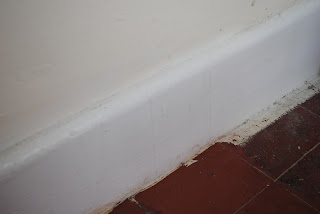 There's a little bit of discolouring which I think is from some sort of product that protects/accentuates the colour of the tiles - and in the picture above the skirting still needs some work, which we've sorted now. We've also done about another 10 tiles and have started work on stripping the gloss off the window and door frames. It is a ceaseless job...